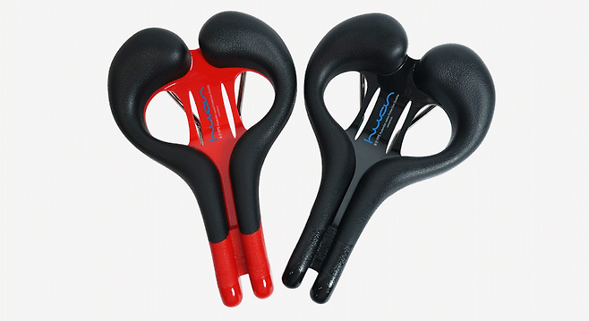 휴안의 PPS4 안장은 비뇨기과 전문의의 조언을 받고 5년간 연구한 끝에 개발한 통증 저감형 안장입니다. 안장의 쿠션을 좌, 우로 나누어 안장에서 좌골결절 부위가 닿는 두 부분을 빈 공간으로 만들었습니다. 좌골결절과 신경을 압박하는 부위의 접촉면을 줄여 압력을 분산하는 원리입니다.