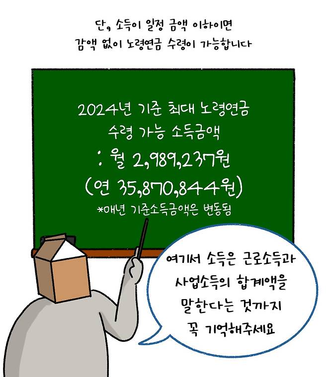 ํ ์ฌ๋์ด ์ผ์ ๊ธฐ๊ฐ ์ด์ ๋ณดํ๋ฃ๋ฅผ ๋ฉ๋ถํ๊ณ , ๋ง 62์ธ(์ ์ง์ ์ผ๋ก ์ํฅ ์์ ) ์ด์์ด ๋๋ฉด ๋งค๋ฌ ์ ๊ธฐ์ ์ผ๋ก ์ง๊ธ๋ฐ๋ ์ฐ๊ธ์