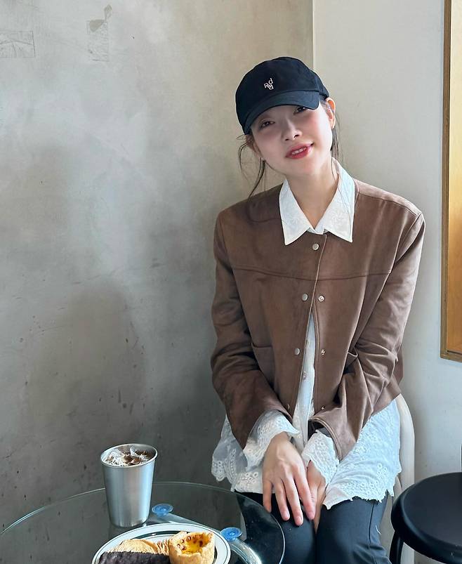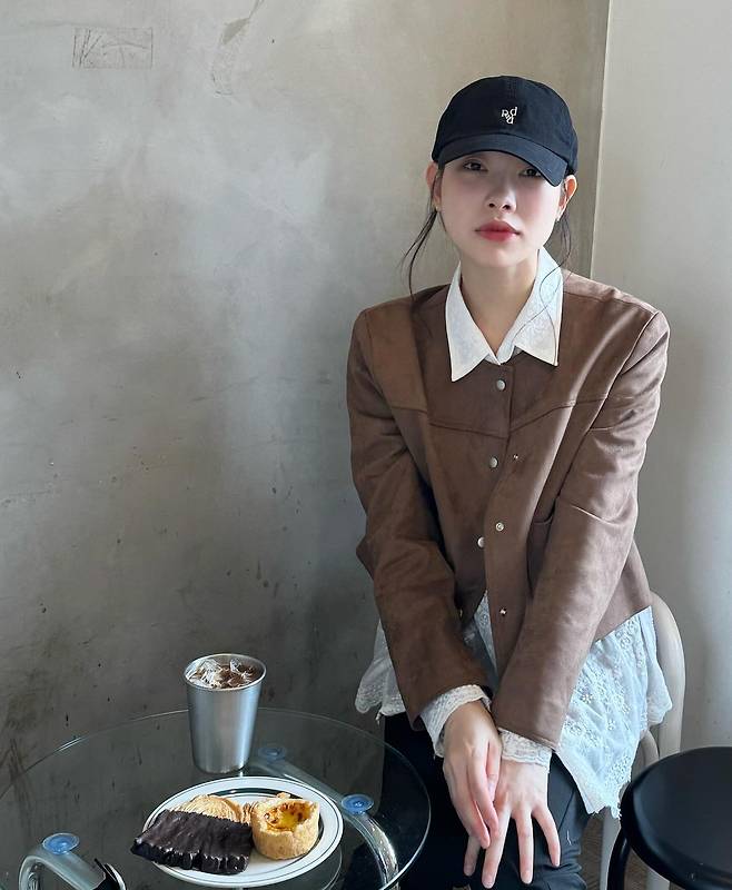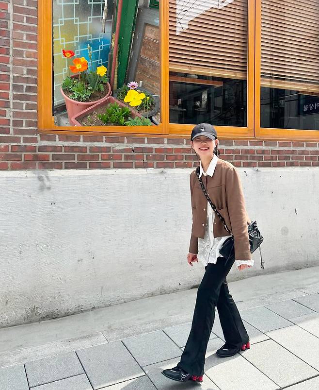 김아영이 보여준 오늘의 룩은 빈티지한 감성과 캐주얼함이 만난 스타일이에요.