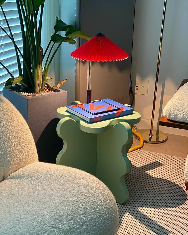 얼마 전 MBC <전지적 참견 시점>에 출연해 집을 공개한 한보름. 인테리에에 관심 좀 있는 사람이라면 모두 알만한 핫한 브랜드의 제품이 가득해 화제를 모았다. 특히 한보름의 인테리어는 패턴과 사랑스러운 컬러를 잘 활용해 공간에서 기분 좋은 에너지가 느껴지는 것이 특징. 이를테면 화이트 의자와 파스텔 민트 사이드 테이블이 있는 공간에는 비비드한 레드 조명과 블루 컬러 소품을 포인트로 놓아두는 식. 제품은 제니가 애정 하는 것으로 유명한 구비의 파샤 체어와 SNS에서 핫한 스웨덴 디자이너 구스타프 웨스트만의 사이드 테이블이다. 가구 컬러 매치가 어렵게만 느껴진다면 한보름의 집에서 영감을 얻어보자.