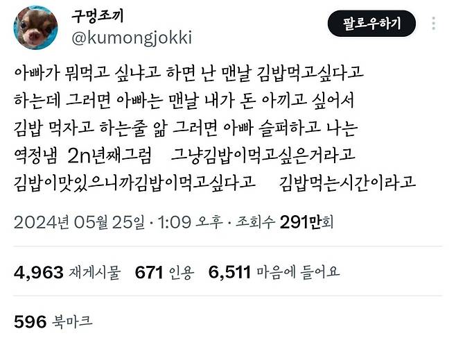 딸이 김밥 먹고싶다고 하면 슬퍼하는 아빠.jpg