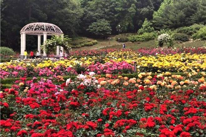 분홍색, 노란색, 빨간색 등의 알록달록한 장미가 약 98여 종 23,000본이 식재되어 있다. 중앙의 큐피드 분수대, 장미탑, 경관 조명, 장미터널, 장미담장 등의 아름다운 구조물이 마련되어 있어 인생샷을 남기려고 사진을 찍는 사람들을 볼 수 있다.