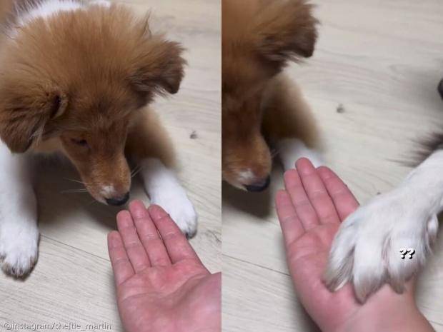 바로 옆에 누워 있던 언니 강아지 윌리가 보다 못해 손수 시범을 보여준 것. 보호자는 '너한테 시킨 거 아니야'라며 윌리의 발을 뿌리치고 계속 마틴에게 손을 들이댔는데.