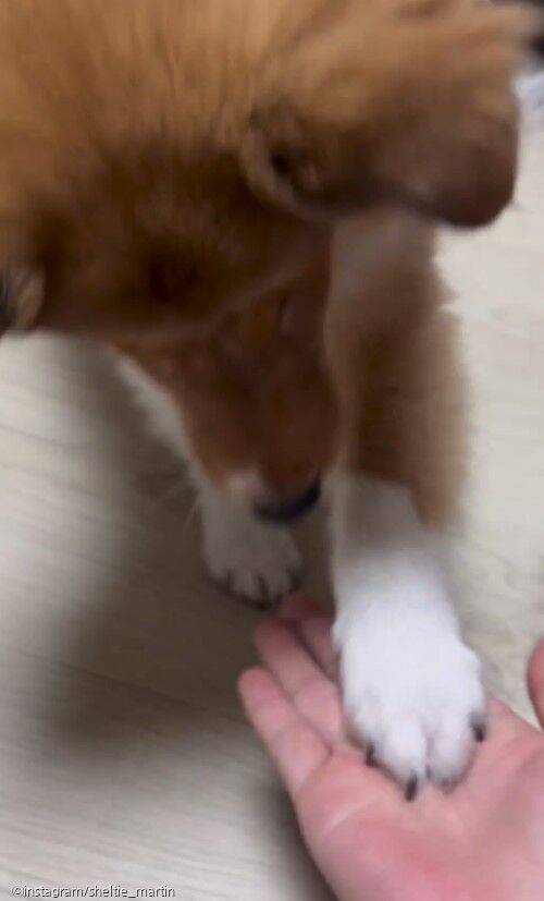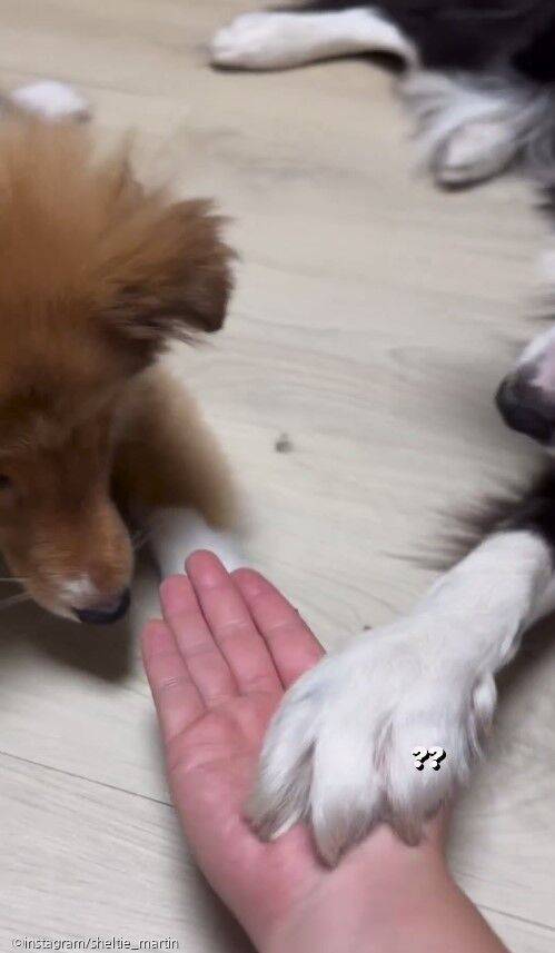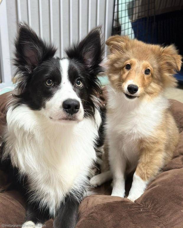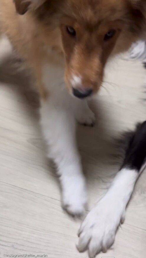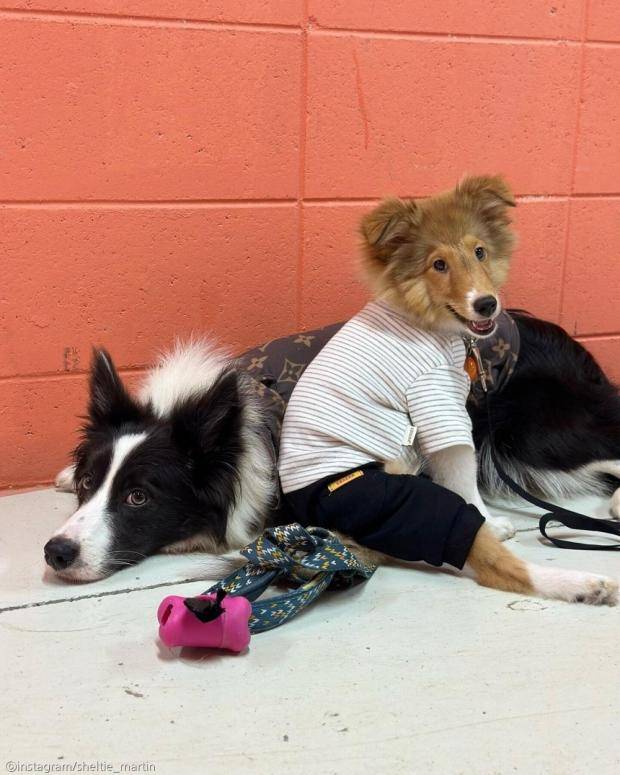 이제 4개월이 된 암컷 셰틀랜드 쉽독인 마틴은 한 살 언니 보더콜리 윌리와 함께 지내고 있다.