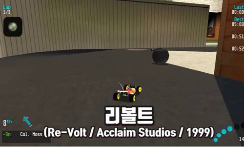 검떠 : '리볼트'는 1999년도에 어클레임에서 제작한 3D 레이싱 게임이죠. 특이하게도 실물 크기의 자동차가 아닌 레이싱을 다루고 있습니다.