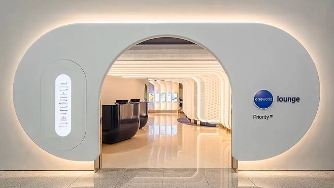 인천국제공항 내 ‘원월드 얼라이언스 라운지’는 글로벌 3대 항공 동맹 중 하나인 원월드(Oneworld)가 지난해 1월 전 세계 최초로 선보인 전용 라운지다. 현재 인천공항에 취항하는 원월드 소속 항공사인 캐세이퍼시픽, 아메리칸항공, 핀에어, 말레이시아항공, 콴타스항공, 카타르항공, 스리랑카항공 등 총 7개 항공사를 이용하는 퍼스트 클래스 및 비즈니스 클래스 승객과 원월드 에메랄드 및 사파이어 멤버십 고객을 대상으로 운영된다. 제1터미널 28번 게이트 인근에 위치하며, 최대 148명의 고객을 수용할 수 있다. 입구는 예로부터 우리나라에서 상징성을 띠는 흰색으로 꾸며졌으며, 내부는 태극 문양을 연상시키는 붉은색과 푸른색의 가구, 갓을 형상화한 바 인테리어 등 한국 전통 문화를 현대적으로 재해석한 요소들이 어우러져 깊은 인상을 전한다.