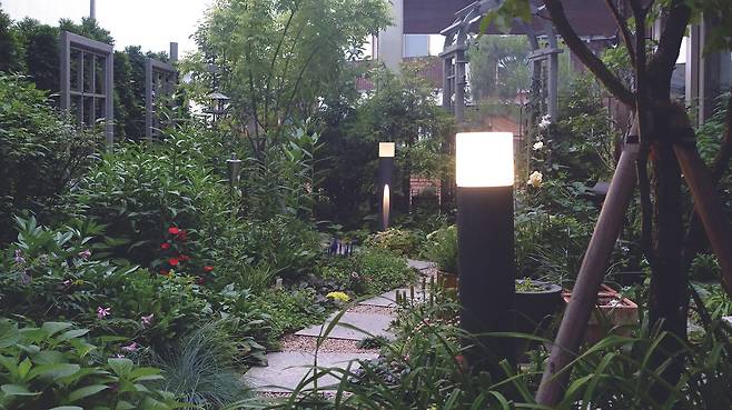 주간뿐만 아니라 야간에도 정원을 즐길 수 있는 핵심 아이템이다. 낮은 위치에서 안전한 진입을 유도하거나 일정 높이에서 특정 대상을 강조하는 등 설치 위치에 따라 연출되는 분위기도 천차만별이다. 어딘가 허전함이 느껴지는 디자인에는 조명을 활용해 보는 것도 좋은 방법이다. 자연 소재와 인공 소재가 만난 독특한 감성은 꽤 매력적이다.