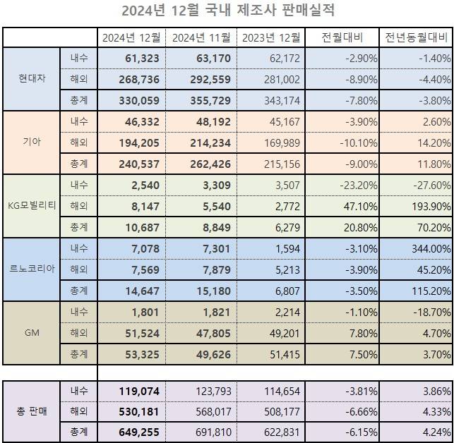아울러, GM 한국사업장은 2024년 내수 시장에 총 24,824대를 판매했다. 한편, GM 한국사업장은 12월 한 달간 총 53,325대를 판매하며 전년 동월 대비 3.7% 증가세를 기록, 2016년 12월 이후 월간 최대 판매량을 기록했다.