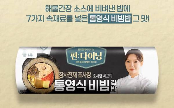 편의점 GS25는 한식당 을지로보석을 운영하며 유명 요리 예능 프로그램에 출연해 화제를 모은 바 있는 조서형 셰프와 손을 잡고 신제품 ‘조서형의 통영식 비빔김밥’을 출시했다. 해물간장 비법 소스로 밥을 비벼서 풍미를 더했으며, 고소하면서도 담백한 맛의 나물을 더해 김밥으로 만들었다. 7가지의 속재료로 식감을 살린 통영식 비빔밥을 김밥으로 만든 제품이라 할 수 있다. 편의점 판매가는 3,400원이다.