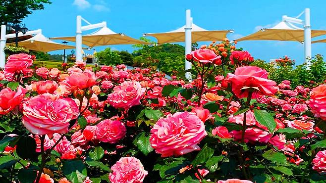 장미 사이로 펼쳐지는 포토 스팟은 인생샷을 건지려는 이들로 발길이 끊이지 않고, 나들이객들은 마치 유럽의 한 정원을 거니는 듯한 기분마저 느낄 수 있다.