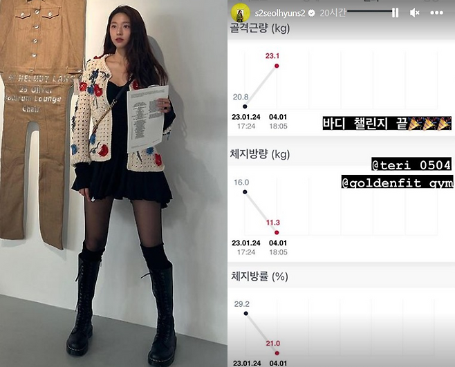 지난 1월 바디 챌린지 대회 1번으로 참가했다는 소식을 전했던 설현, 최종적으로 골격근량은 2kg 정도 늘었으며, 체지방과 체지방률은 각각 4.7kg과 8%로 감량했다고 하는데요.
