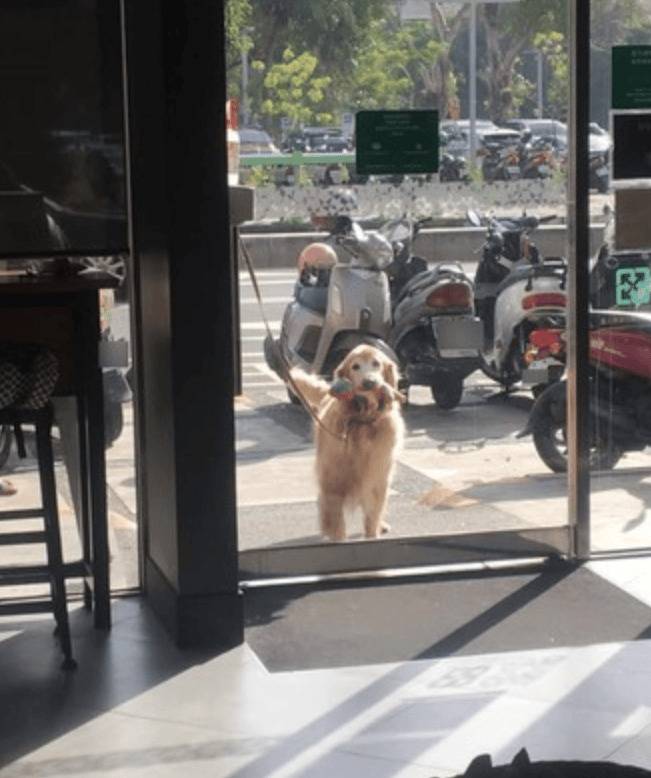 인형을 물고 주인을 기다리는 강아지의 모습은 카페 안의 모든 사람들을 미소 짓게 했습니다. 몇몇 사람들은 귀여운 강아지의 모습을 카메라에 담기도 했습니다. 유리를 통해 강아지의 간절한 눈빛을 본 주인은 결국 마음이 약해져 커피를 사지 않고 바로 강아지에게 돌아갔습니다.