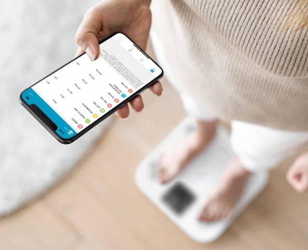 5가지 핵심 데이터는 체중계 LCD 화면으로 바로 확인할 수 있습니다. .나머지 근육량, 내장지방수 등은 애플리케이션(앱)으로 연동해 스마트폰으로 확인할 수 있습니다.