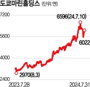도쿄마린홀딩스의 지난해 연간 순이익은 그 전년 동기 대비 85.7% 오른 6958억 엔으로 집계되며 시장 기대치를 넘어섰다. 올해 연간 순이익 추정치는 전년 대비 25% 증가한 8700억 엔으로 사상 최고치를 경신할 전망이다.