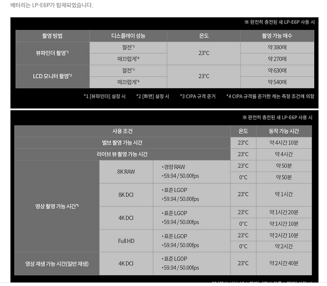 일출 전 은하수를 찍으려고 완충된 정품 배터리LP-E6P 두개중 한개를 카메라에 장착하고
