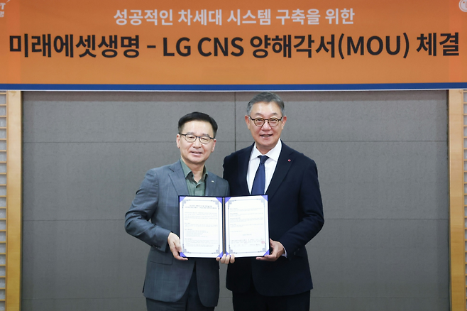 AX 전문기업 LG CNS가 미래에셋생명보험(이하 미래에셋생명) AX(AI 전환, AI Transformation)에 나선다.양사는 최근 서울 여의도 미래에셋생명 본사에서 LG CNS CEO 현신균 사장과 미래에셋생명 CEO 김재식 부회장 등 주요 경영진이 참석해 ‘차세대 시스템 구축을 위한 업무협약(MOU)’을 체결했다.