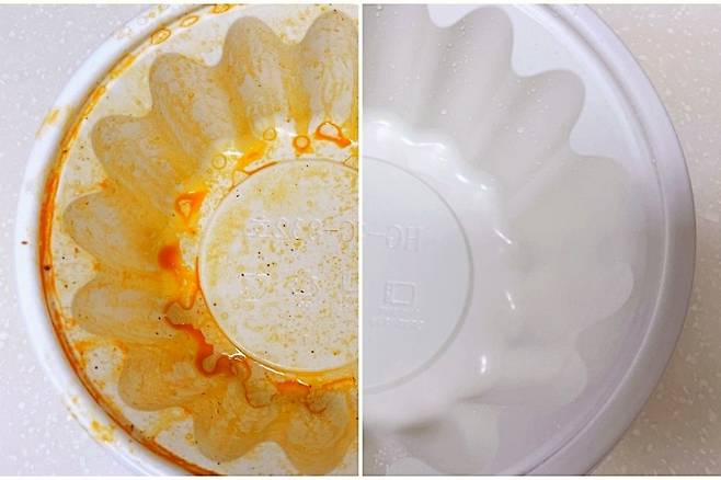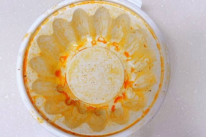 고추기름 범벅인 포장용기 이대로 버리면 재활용이 안되므로 세척이 필요한데요.