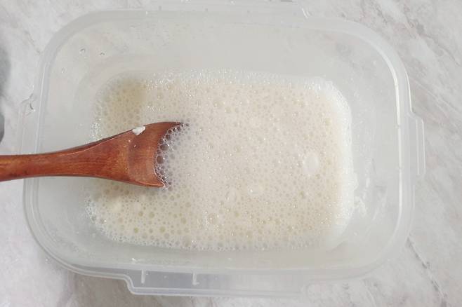 반찬통에 냄새가 난다면 따뜻한 물에 밀가루를 한 스푼 넣고 녹여주시고요