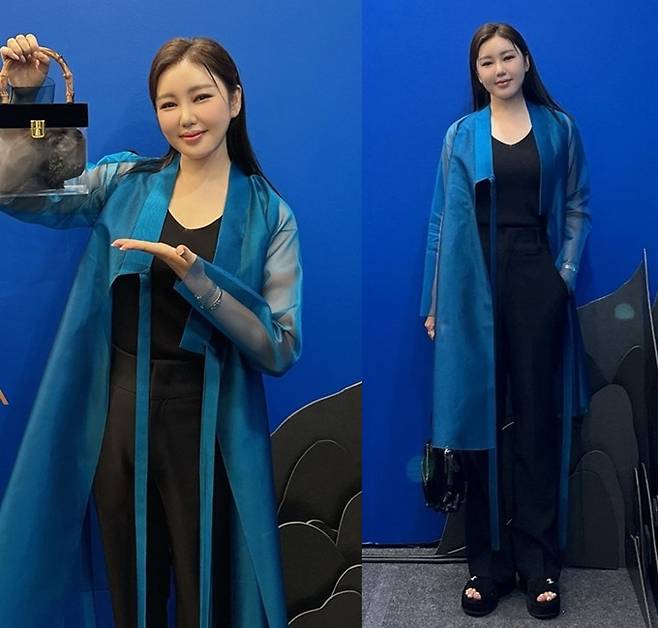 가수 송가인이 여름 시스루 두루마기 코트로 예쁜 한복 자태를 뽐냈다.