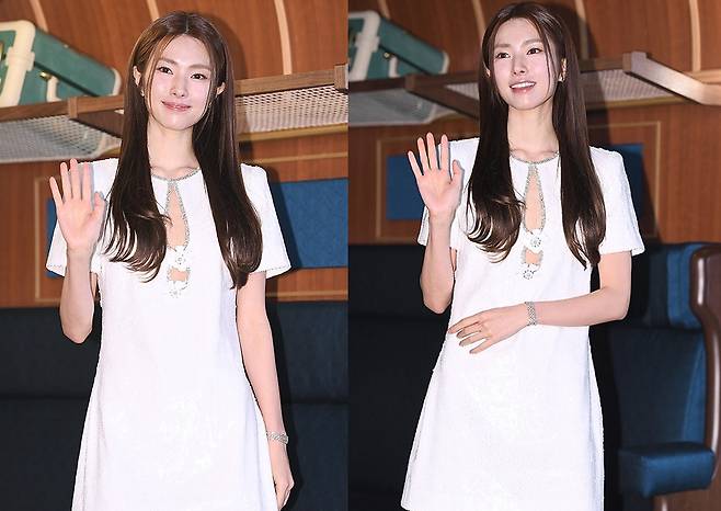 네크라인에 포인트로 더해진 독특한 장식은 세련된 분위기를 극대화하며, 자연스럽게 흐르는 긴 생머리는 그녀의 청순한 매력을 배가시켰습니다.