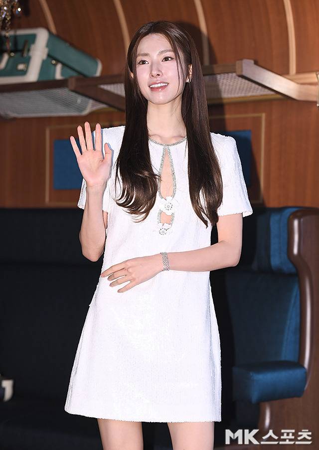 하영은 화려한 장식 없이도 자체 발광하는 듯한 실루엣이 눈길을 끌었으며, 반짝이는 소재가 빛을 받을 때마다 은은한 고급스러움을 연출했습니다.