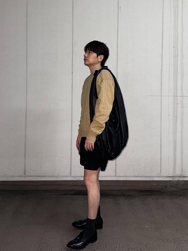 도심의 한 켠, 이동휘가 보여준 오늘의 룩은 ‘절제된 미니멀리즘’의 정석이다. 베이지 톤의 롱 슬리브 니트는 린넨 특유의 텍스처로 자연스러운 주름과 빛의 결을 담아냈고, 블랙 하프팬츠는 무릎 위로 떨어지는 단정한 기장감으로 가볍지만 단호한 실루엣을 완성했다. 발목까지 매끄럽게 이어지는 블랙 삭스와 로퍼는 고전적인 남성복의 문법을 현대적으로 재해석하며, 어깨에 무심히 걸친 대형 블랙 레더 토트백은 ‘예술가의 작업 가방’을 연상케 한다.