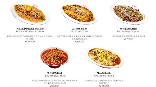대표 메뉴로는 핫스파이시까르보나라파스타와 에그범벅피자가 있습니다. 이 외에도 다양한 파스타와 피자 메뉴를 판매하고 있으며, 가격대는 8,900원부터 15,500원까지 다양합니다.