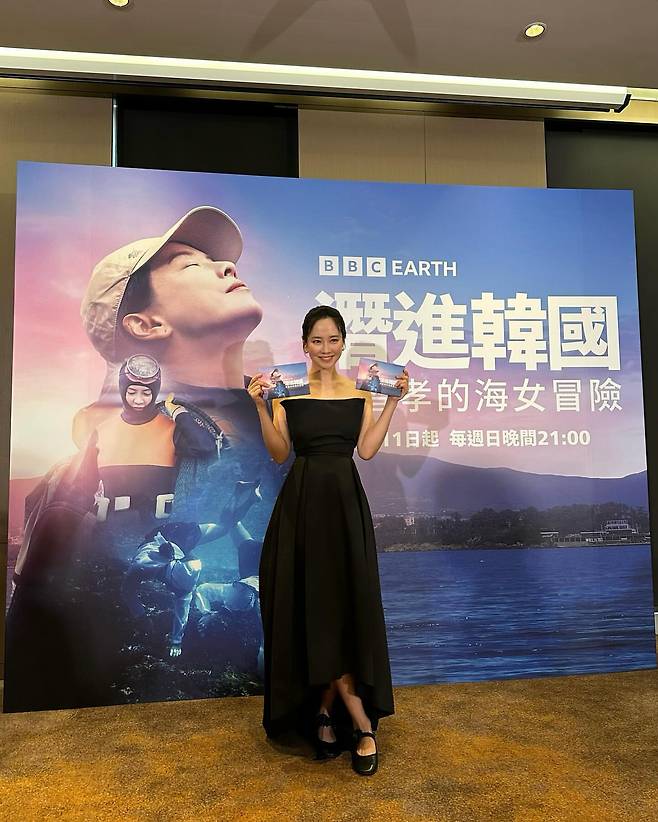 송지효가 BBC 행사에서 오프숄더 디자인의 블랙 드레스를 착용하고 품격 있는 자태를 뽐내고 있다. 상체는 타이트하게, 하체는 풍성하게 퍼지는 A라인 실루엣의 이 드레스는 클래식한 우아함을 완벽하게 구현하고 있다. 심플한 디자인임에도 불구하고 송지효의 기품 있는 분위기와 만나 한층 더 고급스러운 느낌을 자아내며, 블랙 힐과의 매치로 전체적인 조화를 이루고 있다. 행사 포스터를 들고 있는 모습에서는 프로페셔널한 배우로서의 면모도 엿볼 수 있다.