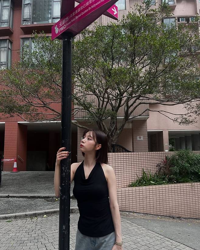 여름은 이번 스타일링에서 백리스 톱을 중심으로 간결하면서도 임팩트 있는 여름룩을 완성했다. 사진 속 여름은 시원하게 드러난 등 라인이 강조된 블랙 홀터넥 슬리브리스 톱에 와이드한 연청 데님 팬츠를 매치해 도시적이면서도 자유로운 무드를 연출했다.