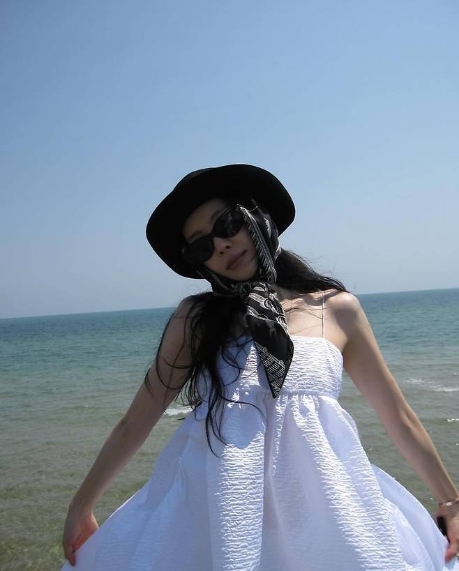 햇살 아래 흩날리는 원피스 실루엣이 우아하면서도 자유로운 매력을 강조했습니다.