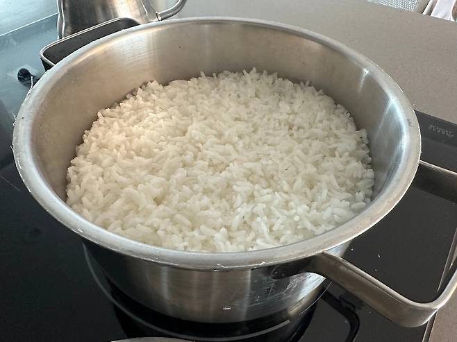 밥솥 뚜껑을 열 때는 반드시 밥솥에서 떨어진 곳에서 열어야 합니다. 뚜껑에 맺힌 물방울이 밥에 떨어지지 않도록 주의하세요.