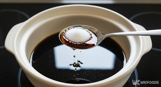 4. 냄비에 간장 1컵, 물 1/2컵, 설탕 3큰술을 넣고 약불에서 설탕이 녹을 때까지 젓는다.