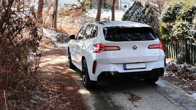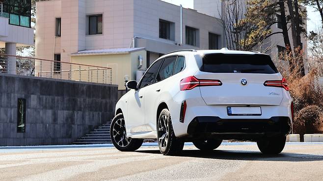 M 스포츠 패키지의 기본 사양으로 제공되는 19인치 휠은 얇고 입체적인 디자인을 보여주고 있다. 편평비가 넓은 느낌은 있지만 SUV니 괜찮다. 후면 디자인은 정말 쿠페스러워졌다. 넘버 플레이트를 범퍼 하단부까지 내리고, 테일게이트에 입체적인 굴곡을 부여한 모습이 매력적이다. 수평 형태로 뻗어 나가는 테일램프 역시도 잘 어울리는 조합이었다. M 스포츠 패키지는 범퍼 양측에 구현되어 있는 거대한 에어 인테이크가 밋밋함을 덜어주고, 머플러 팁은 없지만 거대한 디퓨저가 공격성을 표현해준다.
