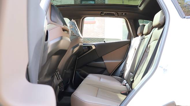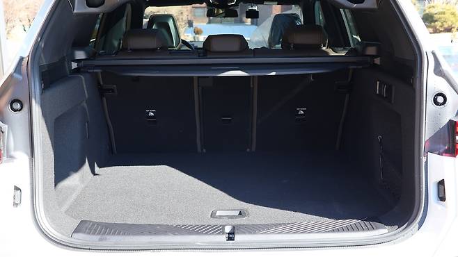 뒷좌석 공간이다. 밖에서는 벨트라인이 꽤나 가파르게 상승해 보였는데, 막상 실내 공간에서는 측면 개방감이 훌륭했다. 천정에는 넓은 면적의 파노라마 글래스 루프가 적용되었다. 개방은 불가능하나, 2열 탑승객에겐 분명 여유를 더한다. 시트 포지션이나 높이, 레그룸 모두 적절한 수준이다. 편의 장비로는 측면 롤러 블라인드와 암레스트 컵홀더, 러기지 스크린, 그리고 2열 에어벤트와 독립 공조가 채택되었다. 리어 시트는 4:2:4 비율 3분할 폴딩이 가능하다. 전동 테일게이트는 당연히 탑재되어 있으며, 트렁크 공간 마감이 깔끔했다.