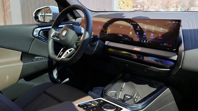 인테리어 디자인이다. 12.3인치 디지털 클러스터와 14.9인치 컨트롤 스크린으로 구성된 곡면 디스플레이, 그리고 HUD로 인포테인먼트를 구축했다. 최신 OS 적용은 물론 무선 폰 프로젝션을 지원한다. 센터페시아의 모든 기능을 통합했고, 센터페시아가 간소화되었다. 대신 인터렉션 바 형상의 무드등이 화려함을 더한다. 변속기는 토글 레버 타입, 센터 콘솔에는 I드라이브 다이얼을 유지한다. M 스포츠 패키지는 알루미늄 트리밍과 헤드라이닝, 그리고 M 레더 스티어링 휠이 추가된다. 시트는 베간자 가죽 소재로 통풍 기능까지 기본이다.