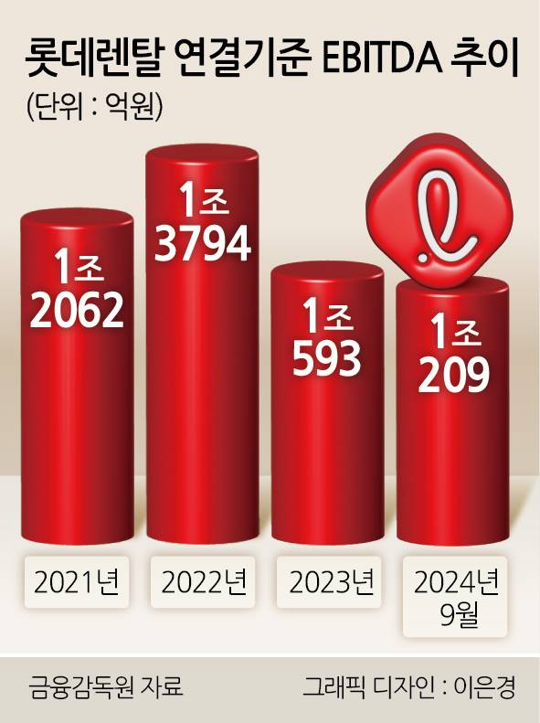 2021년에는 롯데렌탈 FI 엑시트, 계열사 주주의 지분 현금화 차원에서 기업공개(IPO)가 이뤄졌다. 확정 공모가 기준 상장 밸류는 2조1614억원이었으나 현재 시총은 1조1000억원대로 축소된 상태다. 연결기준 상각전영업이익(EBITDA)의 변동성은 있지만 매년 1조원 이상의 꾸준한 영업실적 대비 저평가 상태다.