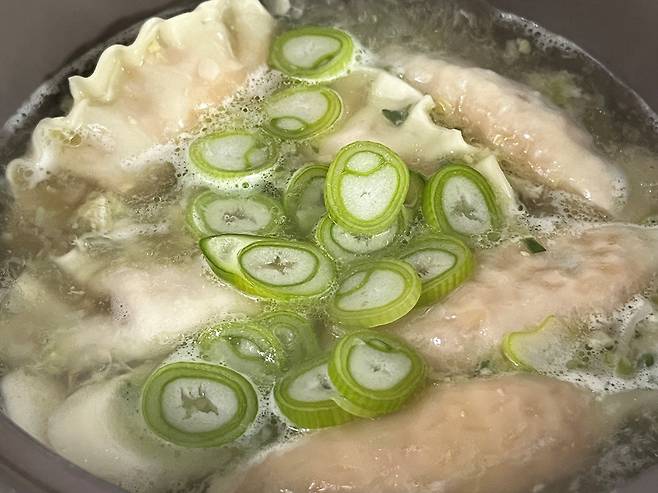대파도 송송 썰어 넣습니다. 대파는 처음부터 넣지 마시고 만두가 거의 익어갈 때쯤 넣으면 향이 살아있어 더욱 향긋하고 개운합니다.