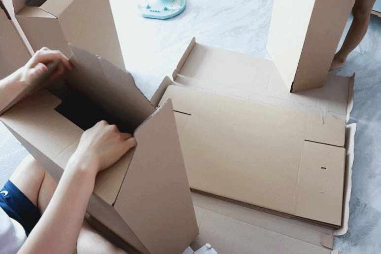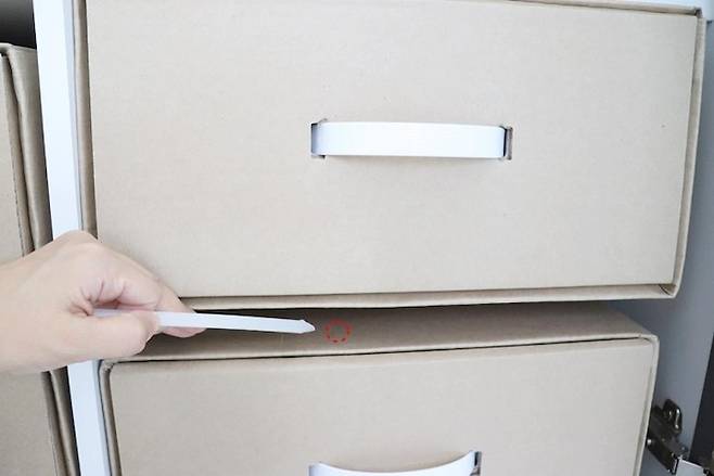 서랍을 당길 때 서랍장 프레임이 딸려나오지 않도록 바닥면과 중간면에 글루를 살짝 묻혀 붙여주면 내용물을 채우더라도 프레임이 단단히 고정되어 서랍만 부드럽게 넣었다 뺐다 할 수 있다.