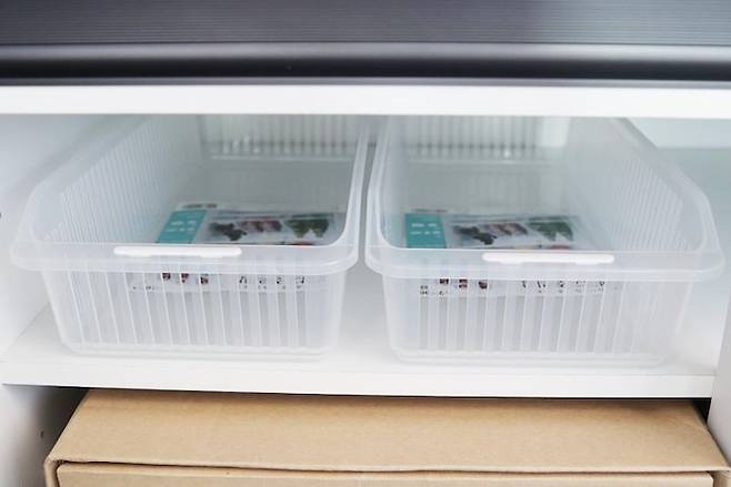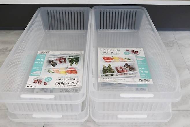 효율적인 정리수납을 위해 냉장고 정리함(플라스틱 바구니)과 사이즈가 적당한 종이 서랍장을 주문했다.