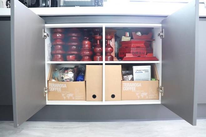 보조주방 싱크대 하부장을 정리했다. 메인주방과 똑같은 컬러, 재질, 디자인의 하부장과 개수대가 있는 우리집 보조주방.