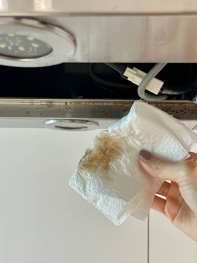 후드 틈새에도 이렇게 기름때가 끼어 있답니다.