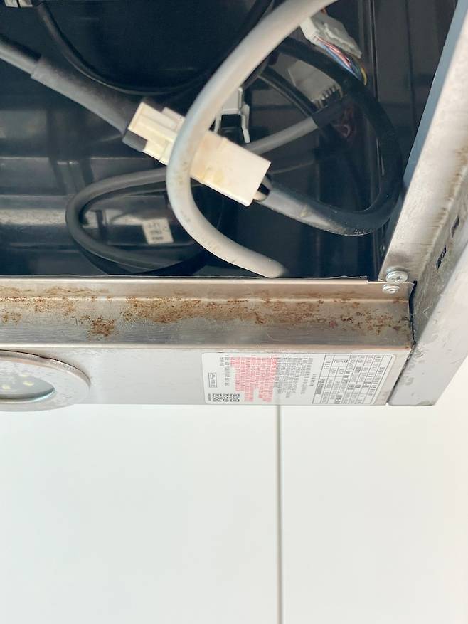 이 부분은 안에 전선과 맞닿아 있어서 풋샴푸를 바로 분사하면 위험할 수 있어요.