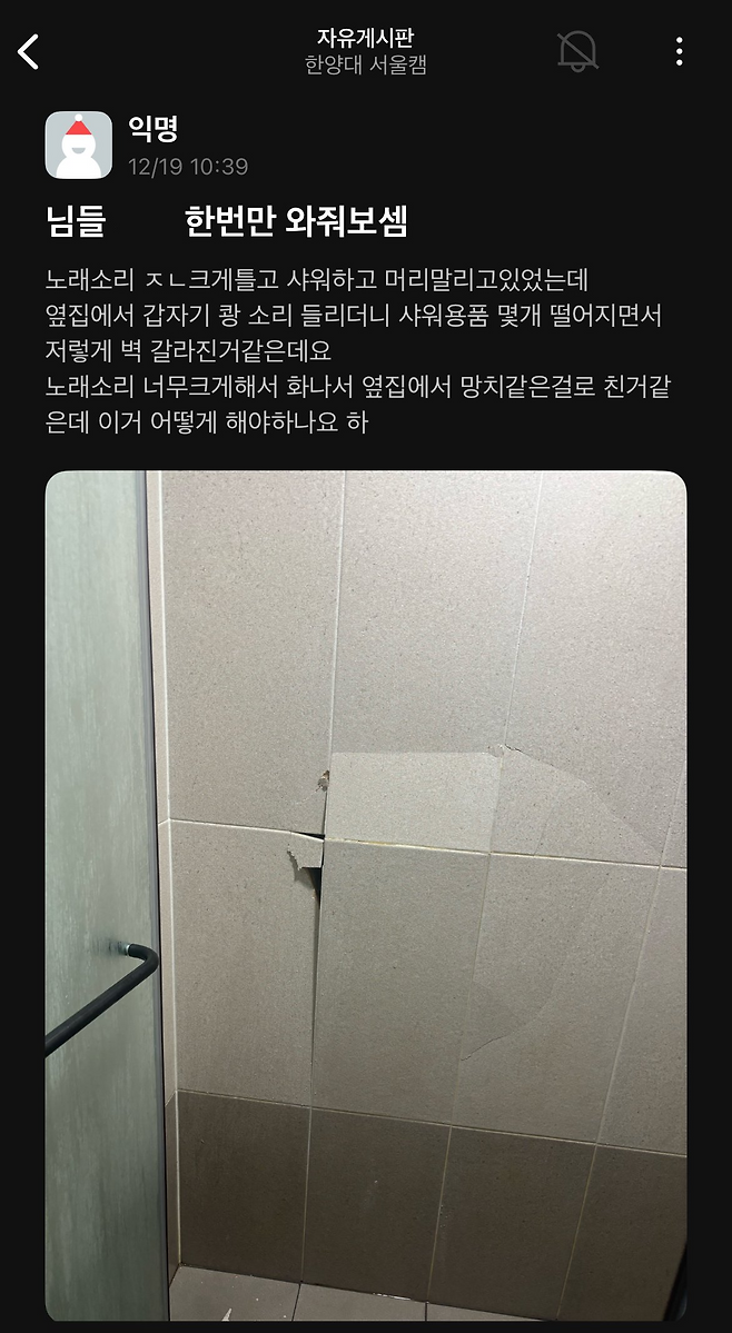 저렇게 쳐서 부셔질 정도의 벽이니까 소음이 얼마나 심했을까..