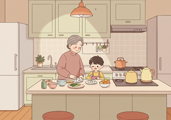 직접 만든 음식을 먹으며 함께 이야기를 나누는 과정에서 아이는 자연스럽게 할머니에 대한 애정을 느끼게 됩니다.
