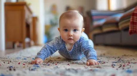 아기가 기어가니기 시작할 때 부터는 주의해야 할 점이 있는데요. 아기가 기어다니는 바닥의 온도를 아기의 체온과 비슷하게 유지하면 좋습니다. 또한 날카로운 모서리에는 보호 패드를 부착하며, 아기가 닿을 수 있는 높이의 콘센트에는 보호 커버를 설치해야 합니다. 또한, 가구를 옮겨 공간을 넓게 만들어 아기가 더욱 안전하게 탐색할 수 있는 환경을 만들어주면 좋습니다. 마지막으로 바닥은 항상 청결하게 유지하여 아기가 머리카락이나 먼지 등을 입에 넣지 않도록 합니다.