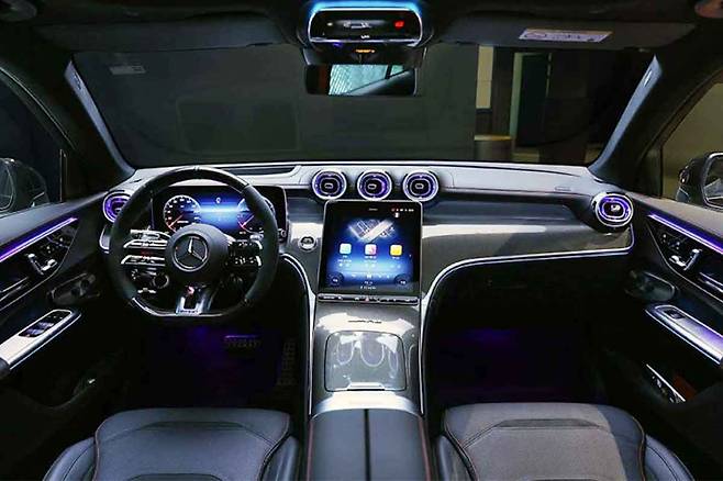 외장 컬러는 옵시디언 블랙(Obsidian Black)으로, 고급스러우면서도 스포티한 느낌을 극대화했다. 21인치 AMG Y-스포크 휠과 함께 AMG 나이트 패키지 I를 적용해 강렬한 블랙 디테일을 살렸다.
