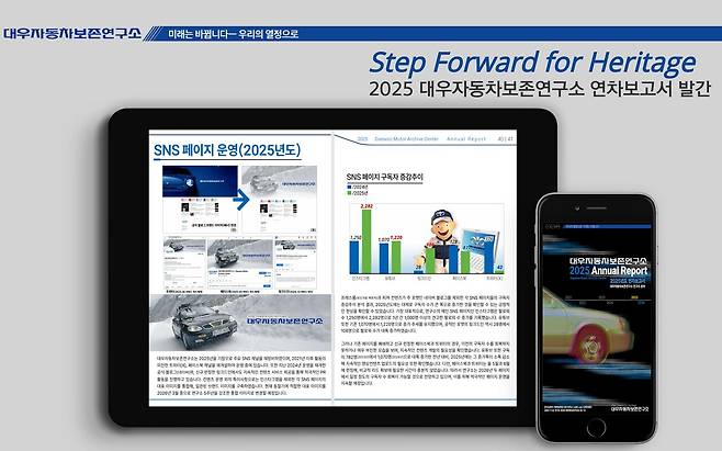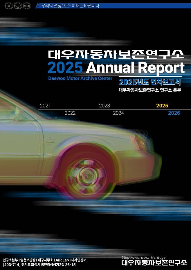 대우자동차보존연구소(연구소장 김형준/이하 '연구소')가 지난 해 연구 활동 성과와 올해 활동 방향을 정리한 2025 연차보고서를 발간했다고 3일 밝혔다. 연구소는 지난 2024년부터 투명한 경영방향을 확립하기 위해 매년 1월마다 연차보고서를 발간하고 있다.
