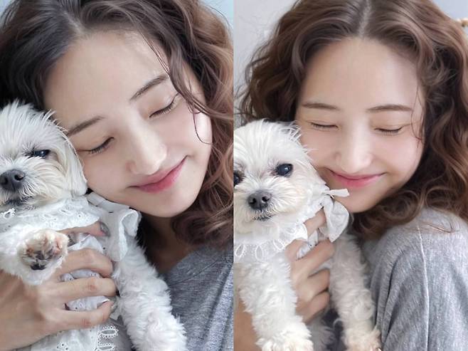 특히 반려견을 안고 미소 짓는 모습은 마치 동화 속 한 장면처럼 포근하고 따뜻한 인상을 주었고, 집에서도 빛나는 꾸안꾸의 정석을 보여주었습니다.
