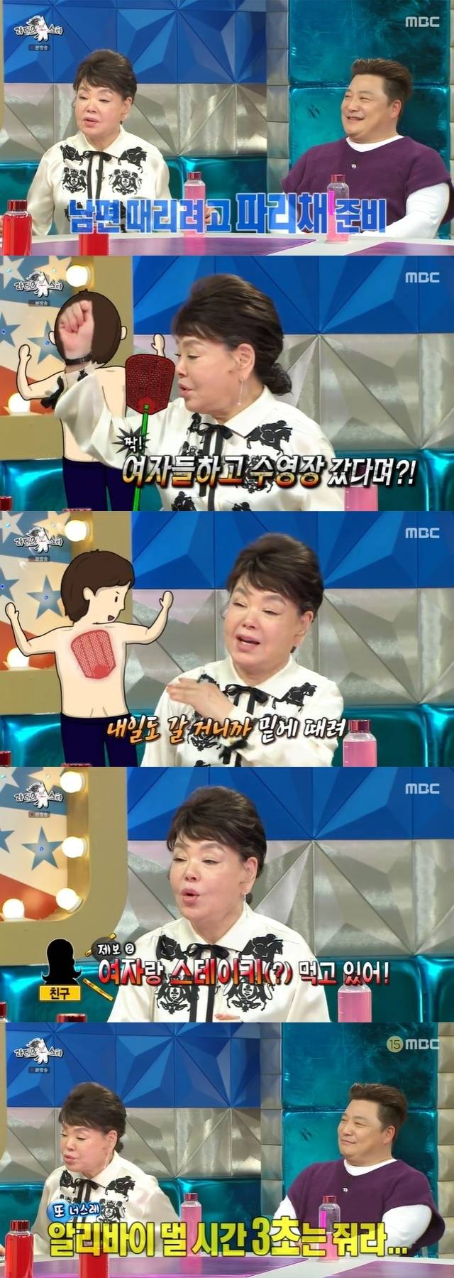 이어 "한 번은 또 (퇴근하면서) '금방 가'라고 했다. 회사가 가까우니까. 된장찌개를 몇 번을 데웠는데 내친구가 또 전화 왔다. '네 남편 여자랑 양식집에서 스테이크 먹고 있다'고. 먹다 말고 왔다보더라. 구두 벗는데 '이 사람아 양식집에서 고기를 잘라?'라고 하니까 '그래도 알리바이 댈 시간 3초는 줘라. 이렇게 들이대면 나는 어떡하냐'고 하더라. (남편이) 하나도 안 당황하고 싸움이 안 된다"고 말했다.