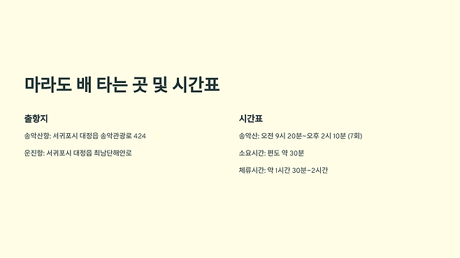 2. 신비로운 섬 마라도, 배편 정보 A to Z로 쉽게 알아보세요!